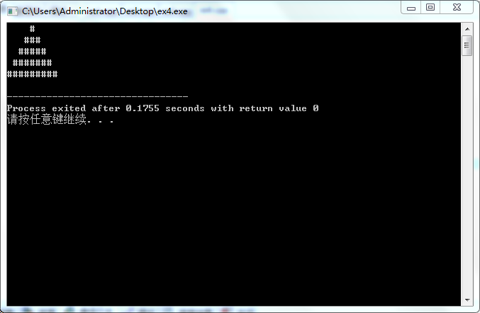#include <stdio.h> int main(){ int line, col; for(line=1;line<=5;line++){ for(col=5-line;col>0;col--){ printf(" "); } for(col=1;col<=2*line-1;col++){ printf("#"); } printf("\n"); } return 0; }