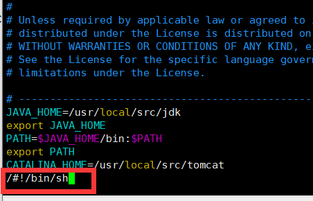 接着进入编辑界面后,直接输入:/#!/bin/sh查找位置
