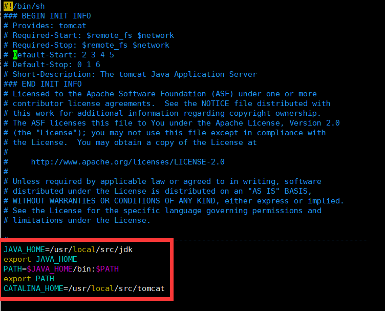 [root@xyongz /]# cp /usr/local/src/tomcat/bin/catalina.sh /etc/init.d/tomcat