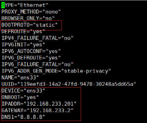 修改ip地址: vim /etc/sysconfig/network-scripts/ifcfg-ens33
