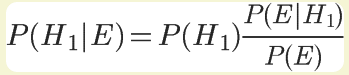 再假定,E表示水果糖,所以问题就变成了在已知E的情况下,来自一号碗的概率有多少?即求P(H1|E)。我们把这个概率叫做”后验概率“,即在事件E发生之后,对P(H1)的修正。