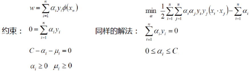 求导:分别对w和b求偏导,分别得到两个条件(由于对偶性质)