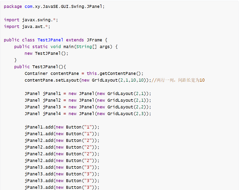 contentPane.setLayout(new GridLayout(2,1,10,10)); //两行一列,间距长宽为10