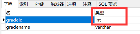 grade表的gradeid字段是int类型的,很明显'大四'这个VALUES是无法插入的,所以报错了![]()