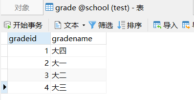 INSERT INTO `grade`(`gradename`) VALUES('大四');![]()