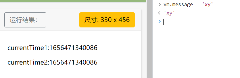 如果在方法中的值发生了变化,则缓存就会刷新!可以在控制台使用vm.message=”xxx"改变下数据的值,再次测试观察效果!