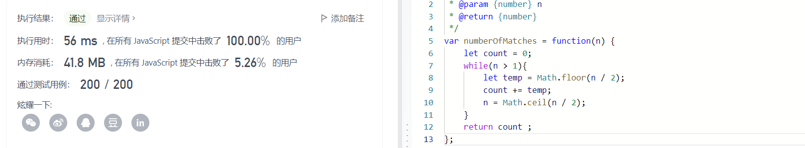var numberOfMatches = function(n) {