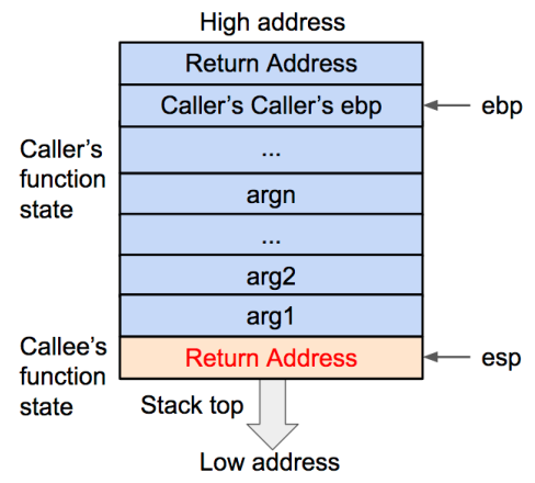 你看这个图片,红色的那个是返回地址,红色上面的那些先是本函数参数然后是父亲函数的信息不用管它,这个红色的非常关键(划重点)