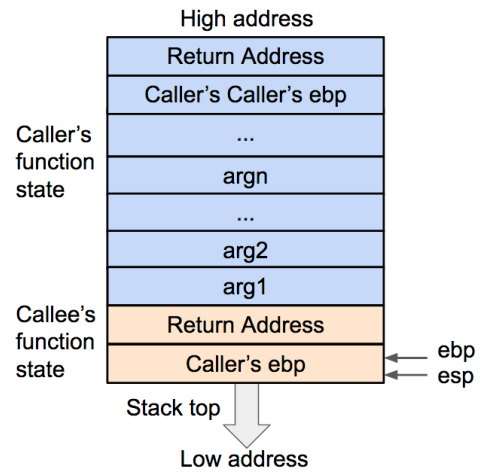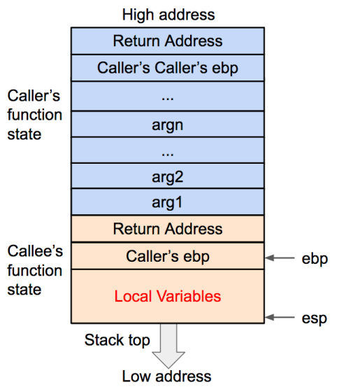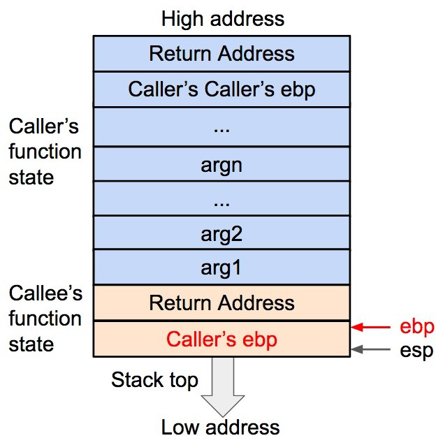 程序运行的时候为了实现函数之间的互相隔离,需要在进入新函数之前保存当前函数的状态,而这些状态信息都保存在栈上。函数栈的边界就是栈顶指针(sp)和栈底指针(bp)所指的区域,sp主要指esp(32位)和rsp(64位),bp主要指ebp(32位)和rbp(64位)。在函数调用时,首先将参数入栈,然后再压入返回地址和栈底指针寄存器bp,其中压入返回地址是通过call实现的。在函数结束时,将sp重新指向bp的位置,并且弹出原来的bp给现在的bp和弹出返回地址给专门记录执行指令的寄存器