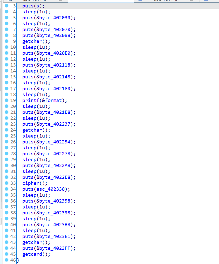 总的来说呢就是给你一波接着一波的交互,而且这个交互是你输入回车就行,但是这个次数是随机的,所以我们脚本要加while循环,最后的漏洞就是