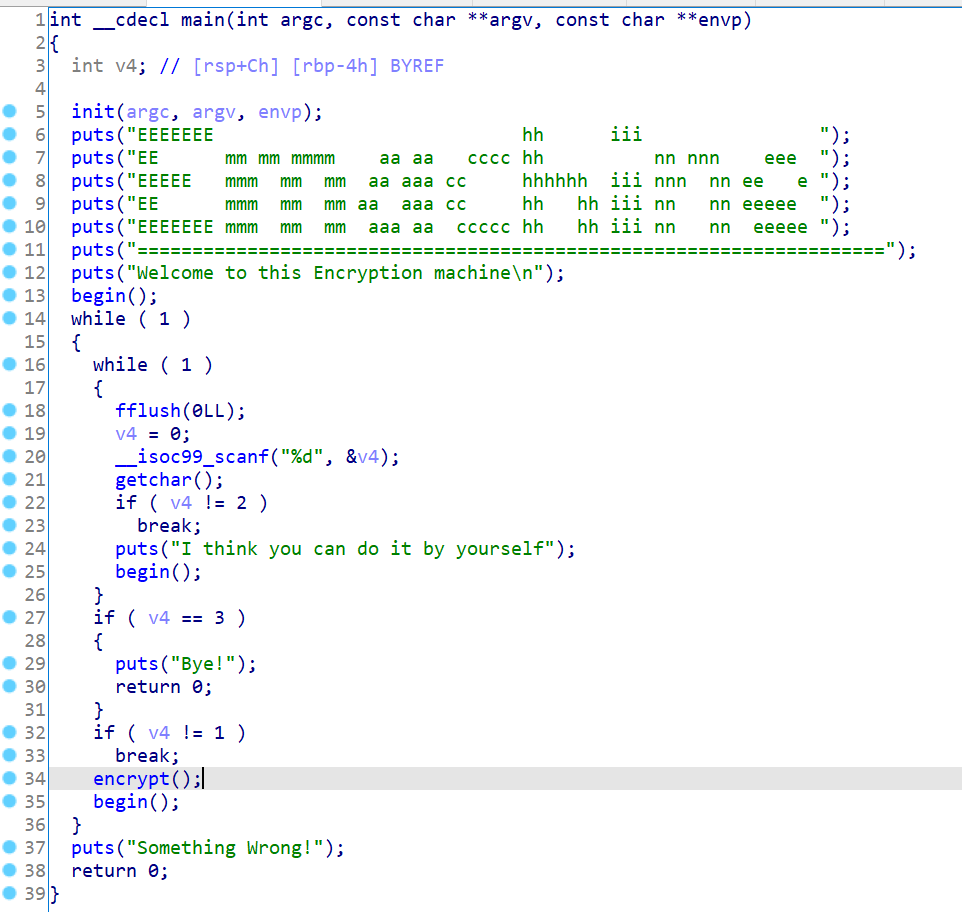 #首先我们泄露puts的地址,然后我们要重新返回encrypt函数,这样子进行第二次栈溢出