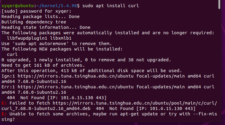 curl -O -L https://mirrors.tuna.tsinghua.edu.cn/kernel/v5.x/linux-5.4.98.tar.xz