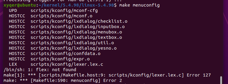 可以发现缺少了flex和bison