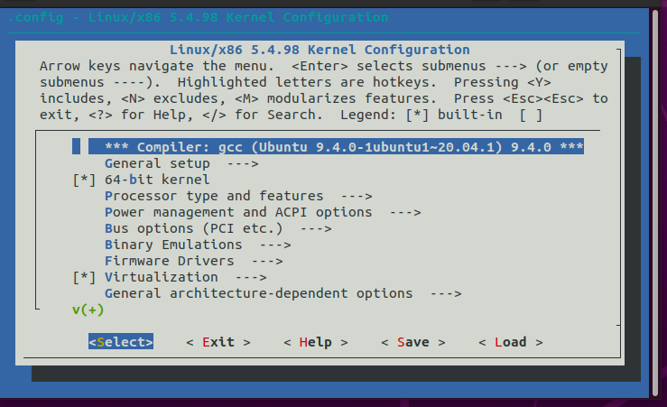 可以看到进入了配置页面,接下来进入Kernel hacking -> Compile-time checks and compiler options,然后勾选Compile the kernel with debug info,便于后面的调试