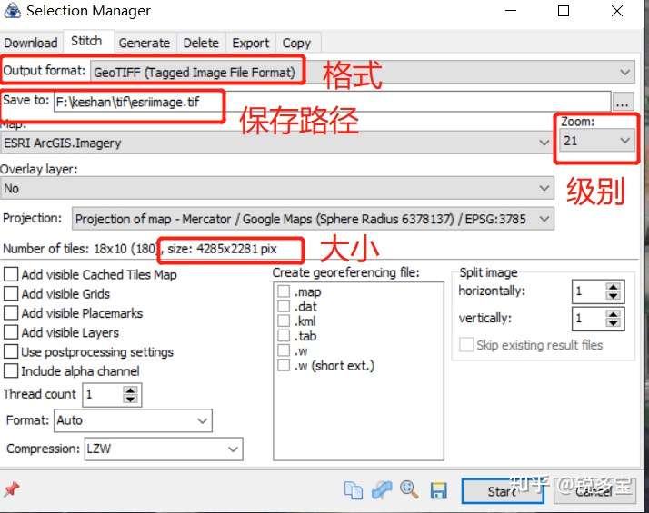 在下载框中,设置下载影像的格式、坐标系、地图级别、保存路径等: