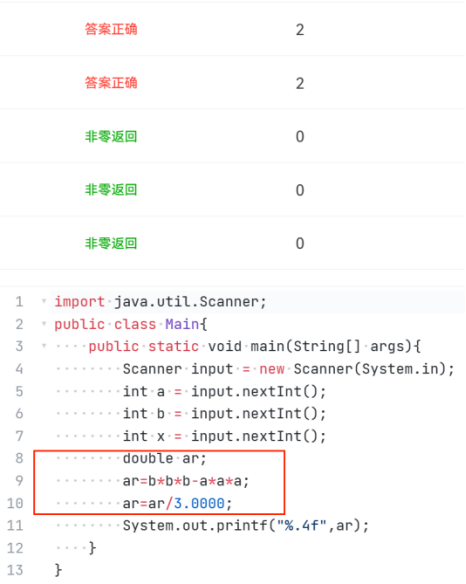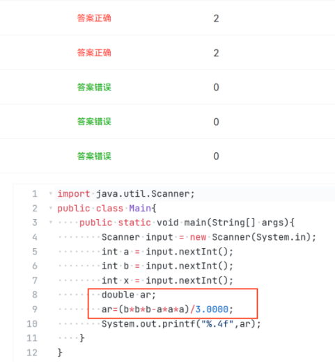 7-11 这道题是我比较费解的一道题目,题目就是一个有关计算的简单代码,四次提交结果如下: