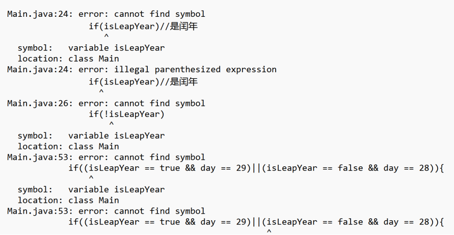 在做这道题时,最大的问题其实是在对于陌生的第一次用的set和get的不会运用,即使是在课堂中看见过老师运用,但在第一次自己写时还是暴露了许多问题,比如说set和get怎么用,他们是什么意思,类型要怎么定义,要不要放参数等等,因为我们的老师是不讲语法的,在写这道题的时候我甚至只知道set和get使用来获取和赋值给私有属性的,当时的我甚至认为他们俩是一个意思,任意选一个写就可以了,所以在这道题上就卡了很久,不停的改错,查阅资料学习语法,可以说是记忆深刻了。在写方法的时候也是学到了很多,比如在这道题之前的求时间的题目中我都是分块if-else判断月份的,如下: