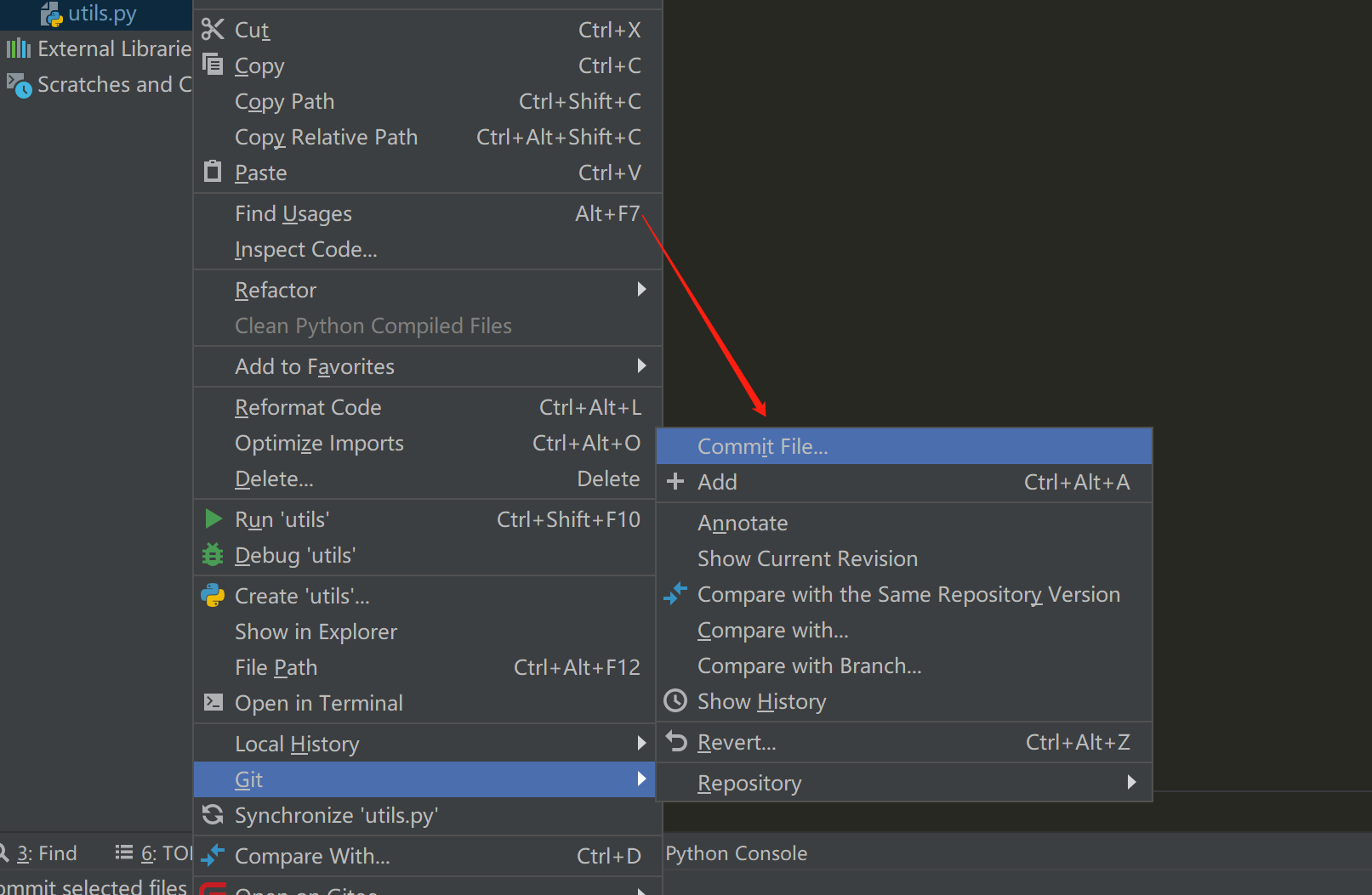 5、当你修改或者删除了一个文件要上传到gitee时,右键选择该文件或者该文件夹,然后>git>commit file。