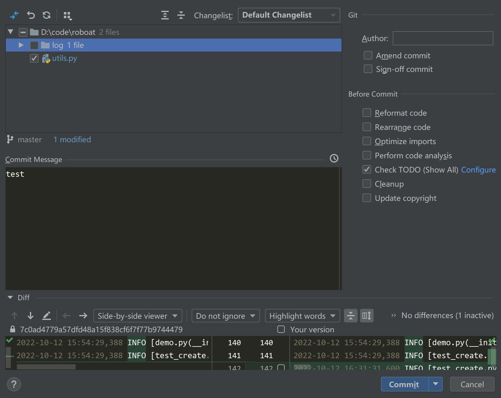 6、 弹出commit changes弹框,选择提交的文件,添加提交说明后,点击commit进行提交,将修改的文件内容提交到仓库中