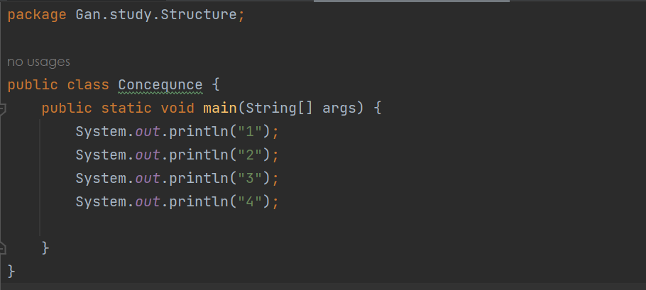 - Java的基本结构就是顺序结构,除非特别指明,否则就按照顺序一句一句执行。