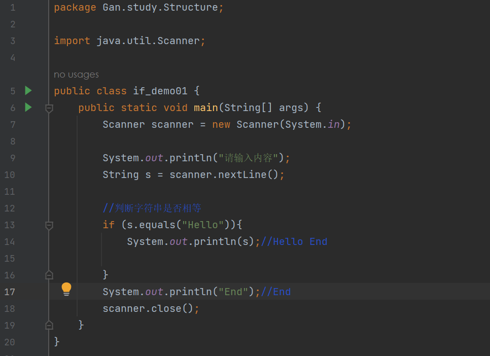 if(布尔表达式){ //如果布尔表达式为true将执行的语句 }![]()