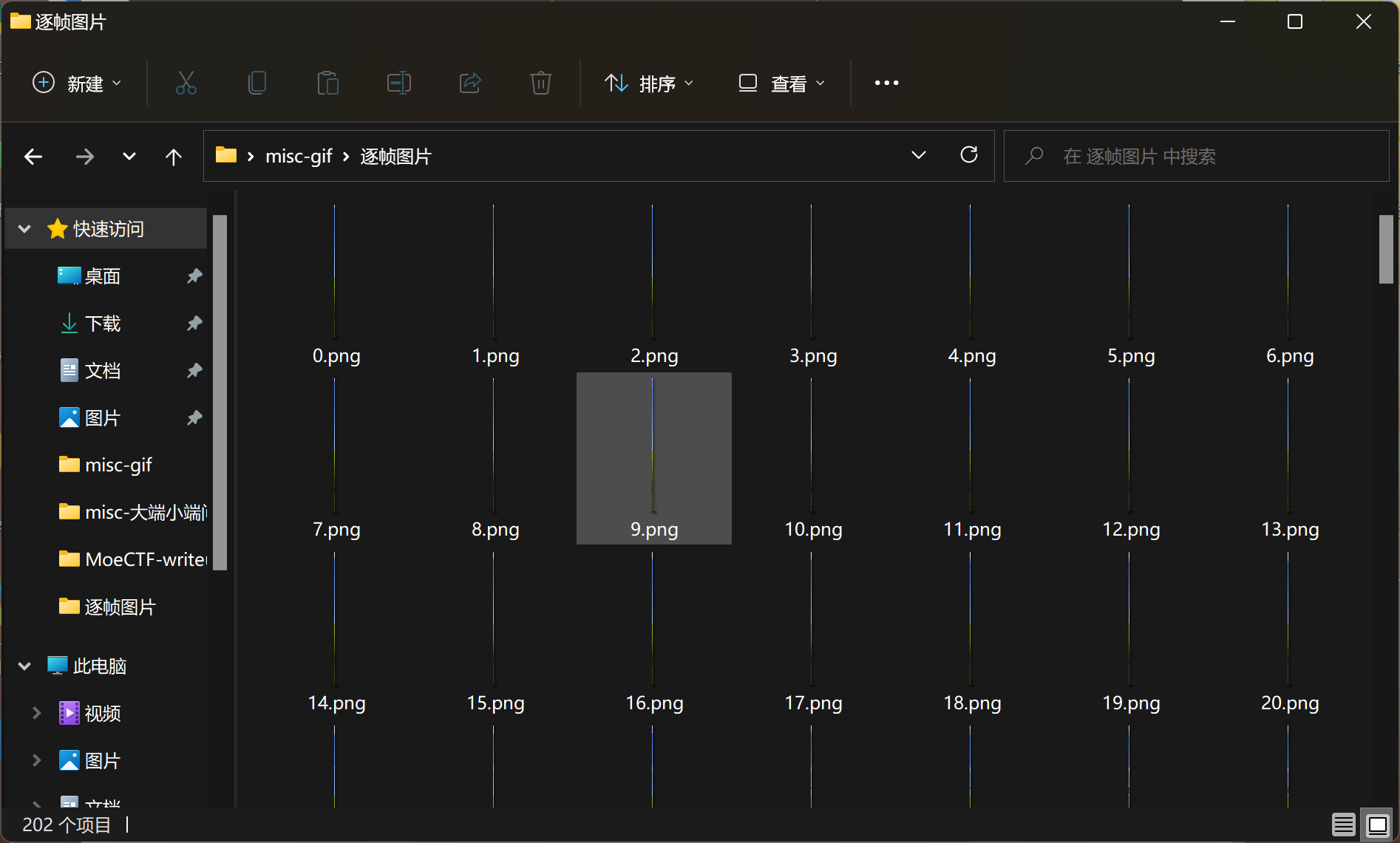 解题方法:仔细观察发现这张动图里面有黑色的字母在闪烁,猜测它的flag信息可能就隐藏在里面: