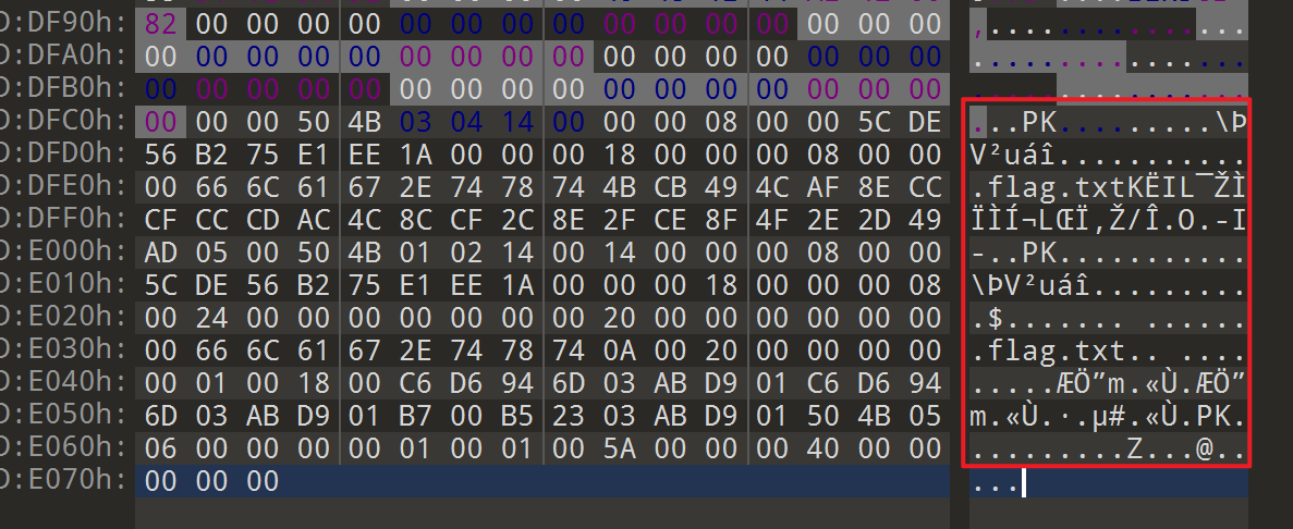 分离出一个压缩包,解压后得到一个flag.txt文档,打开后就得到flag: