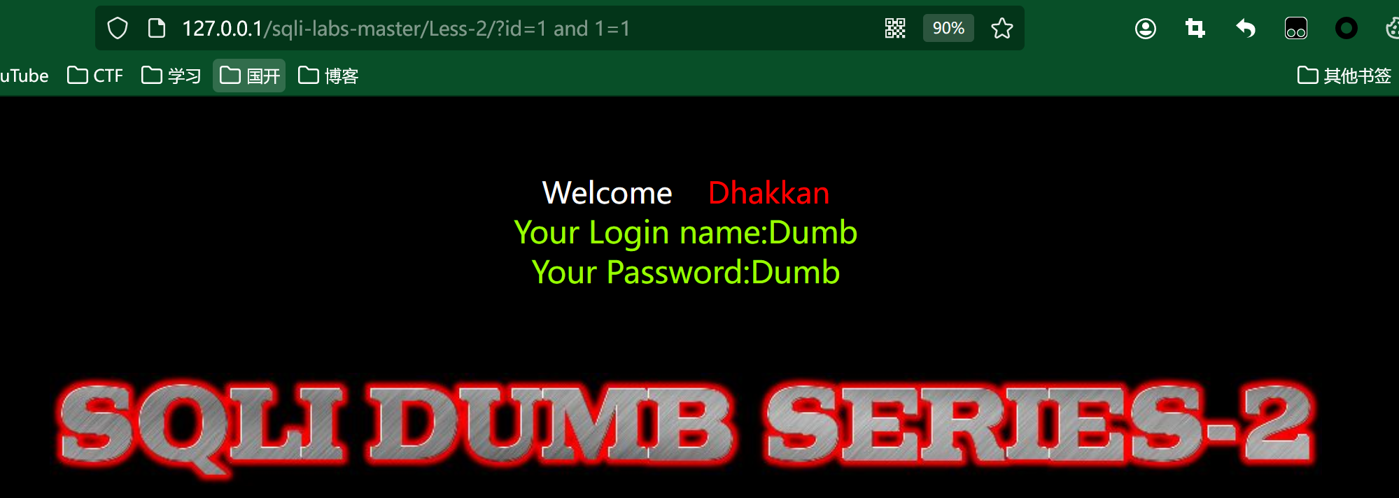 通过回显可知是数字型注入,然后现在将第一关的sql注入语句改为数字型,就可以注入成功