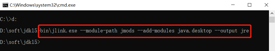 3)运行命令:bin\jlink.exe --module-path jmods --add-modules java.desktop --output jre