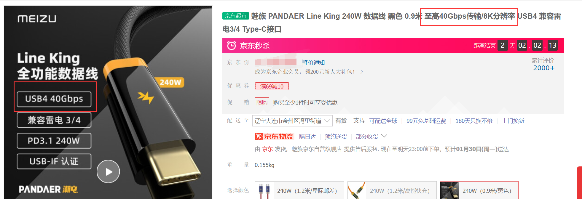 PS: 选用数据线的时候一定要综合考虑,性能过高的数据量往往也没有必要,毕竟这时候瓶颈很可能是硬盘本身或者是硬盘盒,跟可能是电脑主板,还有就是高质量的数据量确实太贵了:(认准8K分辨率传输,40Gb/s的速度哦)