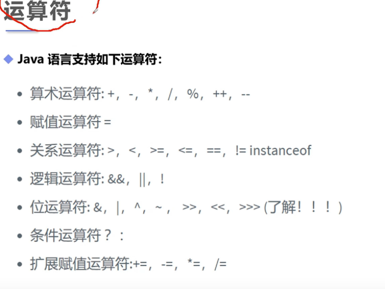 基本运算符包括:算数运算符,赋值运算符,关系运算符,逻辑运算符,(位运算符),条件运算符,扩展赋值运算符