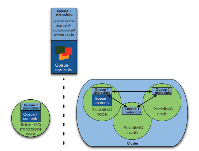 答:当你在单 node 上声明 queue 时,只要该 node 上相关元数据进行了变更,你就会得到 Queue.Declare-ok 回应;而在 cluster 上声明 queue ,则要求 cluster 上的全部 node 都要进行元数据成功更新,才会得到 Queue.Declare-ok 回应。另外,若 node 类型为 RAM node 则变更的数据仅保存在内存中,若类型为 disk node 则还要变更保存在磁盘上的数据。