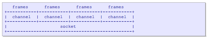 其中每一个 channel 运行在一个独立的线程上,多线程共享同一个 socket。