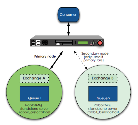 Warrens 模型存在的问题:对于第一种模型,虽然理论上讲不会丢失消息,但若在该模型上使用持久化机制,就会出现这样一种情况,即若作为 active 的 server 异常后,持久化在该 server 上的消息将暂时无法被 consume ,因为此时该 queue 将无法在作为 hot-standby 的 server 上被重建,所以,只能等到异常的 active server 恢复后,才能从其上的 queue 中获取相应的 message 进行处理。而对于业务来说,需要具有:a.感知 AMQP 连接断开后重建各种 fabric 的能力;b.感知 active server 恢复的能力;c.切换回 active server 的时机控制,以及切回后,针对 message 先后顺序产生的变化进行处理的能力。对于第二种模型,因为是基于共享存储的模式,所以导致 active server 异常的条件,可能同样会导致 cold-standby server 异常;另外,在该模型下,要求 active 和 cold-standby 的 server 必须具有相同的 node 名和 UID ,否则将产生访问权限问题;最后,由于该模型是冷备方案,故无法保证 cold-standby server 能在你要求的时限内成功启动。