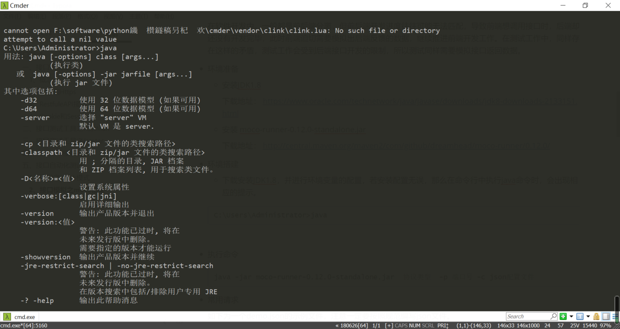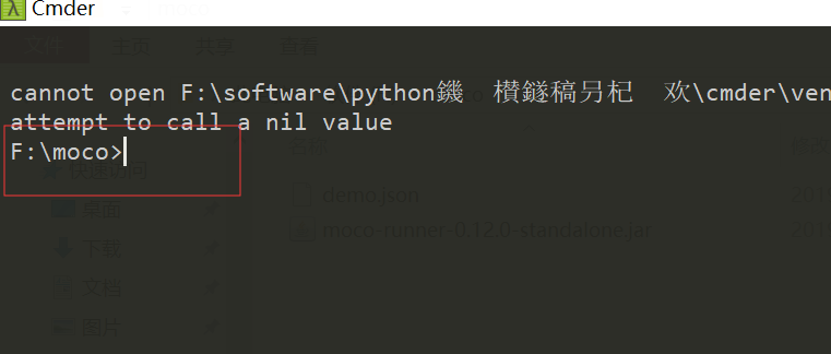 首先,切换到moco-runner-0.12.0-standalone.jar文件夹,然后执行打开命令行,输入命令