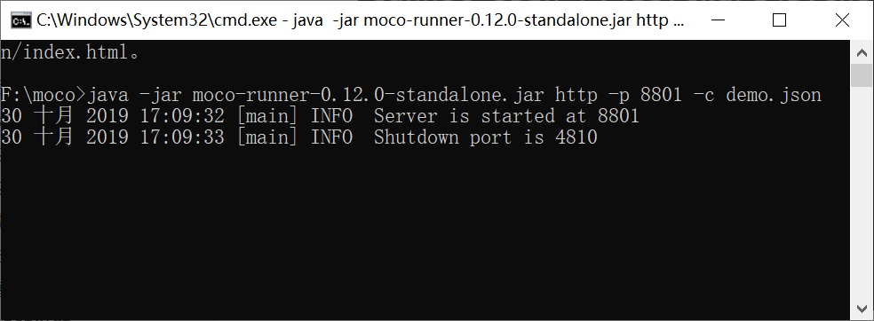 java -jar moco-runner-0.12.0-standalone.jar http -p 8801 -c demo.json