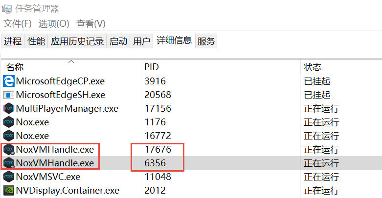 若要连接多台夜神模拟器,首先要开启模拟器,然后,再查看任务管理器中程序PID