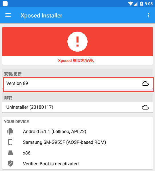 首先在百度搜索:Xposed框架下载安装,然后,根据手机或者模拟器版本,选择下载对应版本的Xposed框架,若版本不匹配,安装激活时将会出现错误,并提示:Xposed目前不兼容Android SDK版本 XX 或者你的处理器架构XX。