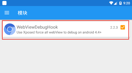 最后,重新打开Xposed查看安装的模块WebViewDebugHook,显示已经成功。