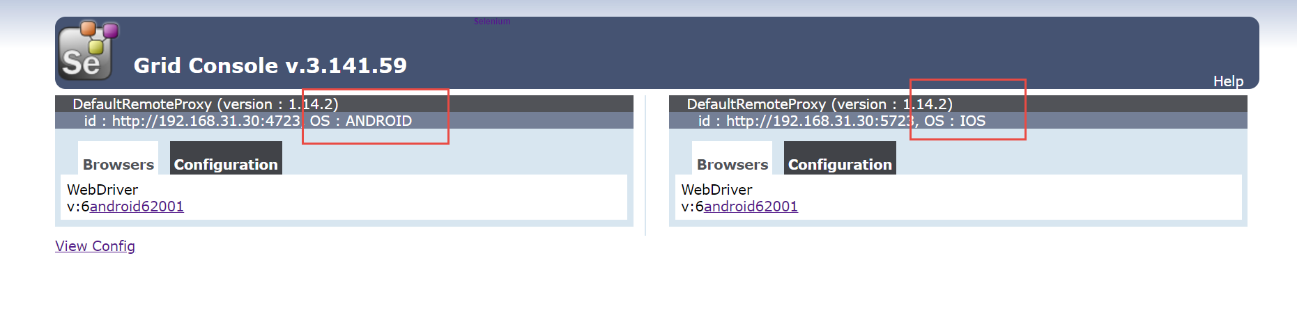 nodeconfig_ios.json配置,与上一个node区别在于appium地址和端口以及平台名称为IOS