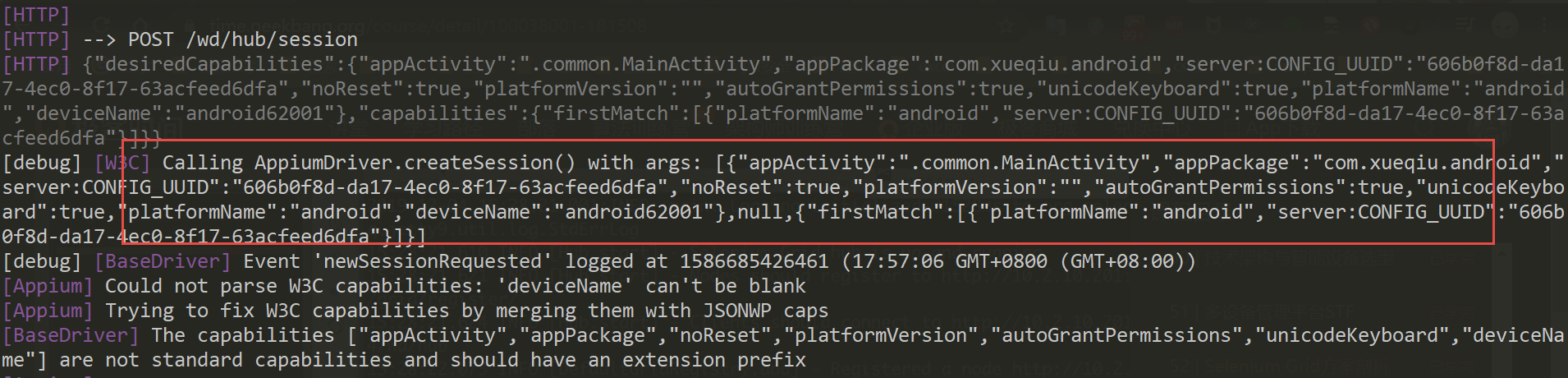 selenium-grid接收到对应参数,并进行匹配,正好发现有注册为ANDROID的node节点,然后将其发送至该节点appium服务器,然后appium服务器与其连接手机进行交互执行测试用例。