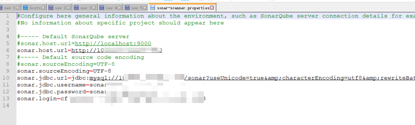 sonar-scanner.properties文件进行编辑,修改以下配置项:# 设置为您的 SonarQube 服务器的 URL。 sonar.host.url=http://10.222.88.220:9000 # 源代码的默认编码格式 sonar.sourceEncoding=UTF-8 # SonarQube 使用的数据库连接 URL(如果 SonarQube 使用外部数据库) sonar.jdbc.url=jdbc:mysql://10.222.155.88:3306/sonar?useUnicode=true&characterEncoding=UTF-8 # SonarQube 数据库的用户名和密码 sonar.jdbc.username=s sonar.jdbc.password=s # 用于连接 SonarQube 服务器的认证令牌(Token) sonar.login=dblfe7aaa也可以直接用其他开发人员配置完整的文件