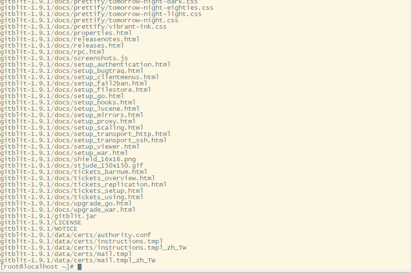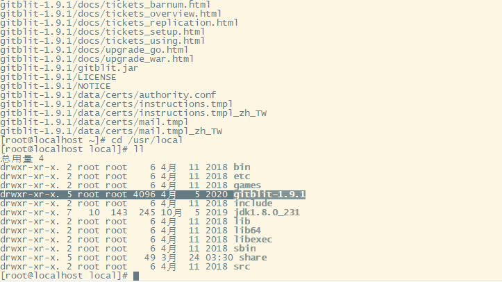 指令:tar -zxvf /opt/gitblit-1.9.1.tar.gz -C /usr/local