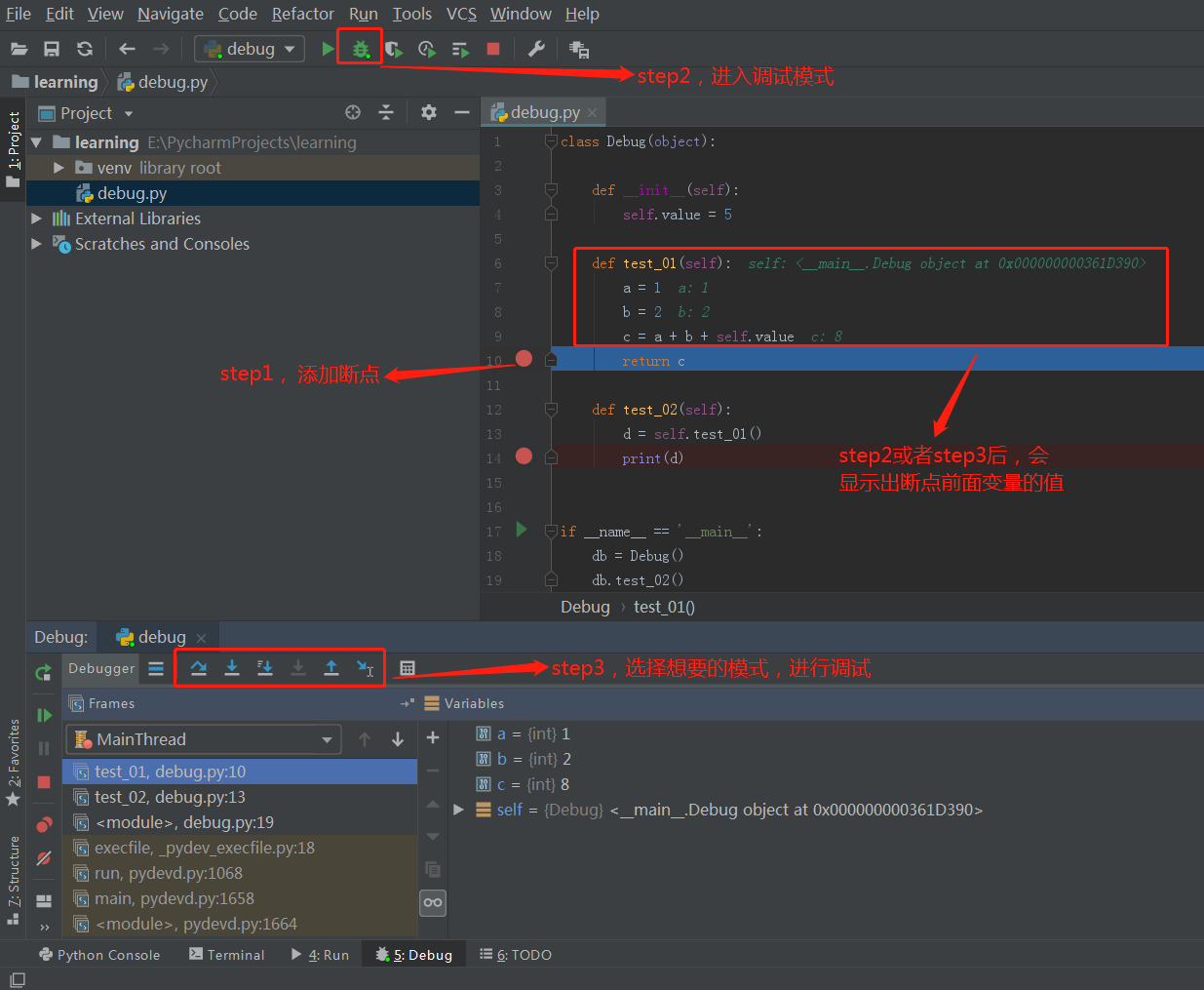 pycharm的调试:http://www.360doc.com/content/22/1120/20/37289152_1056826955.shtml