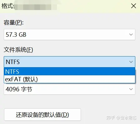 windows格式化U盘时找不到FAT32的格式,只有两种格式选择。