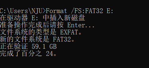 格式化失败,命令行经过漫长等待后报错,U盘坏掉,慎重尝试。
