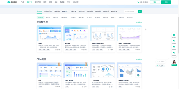 模板库超丰富,CRM、OA、进销存……基本你能想到的,它都有现成的。