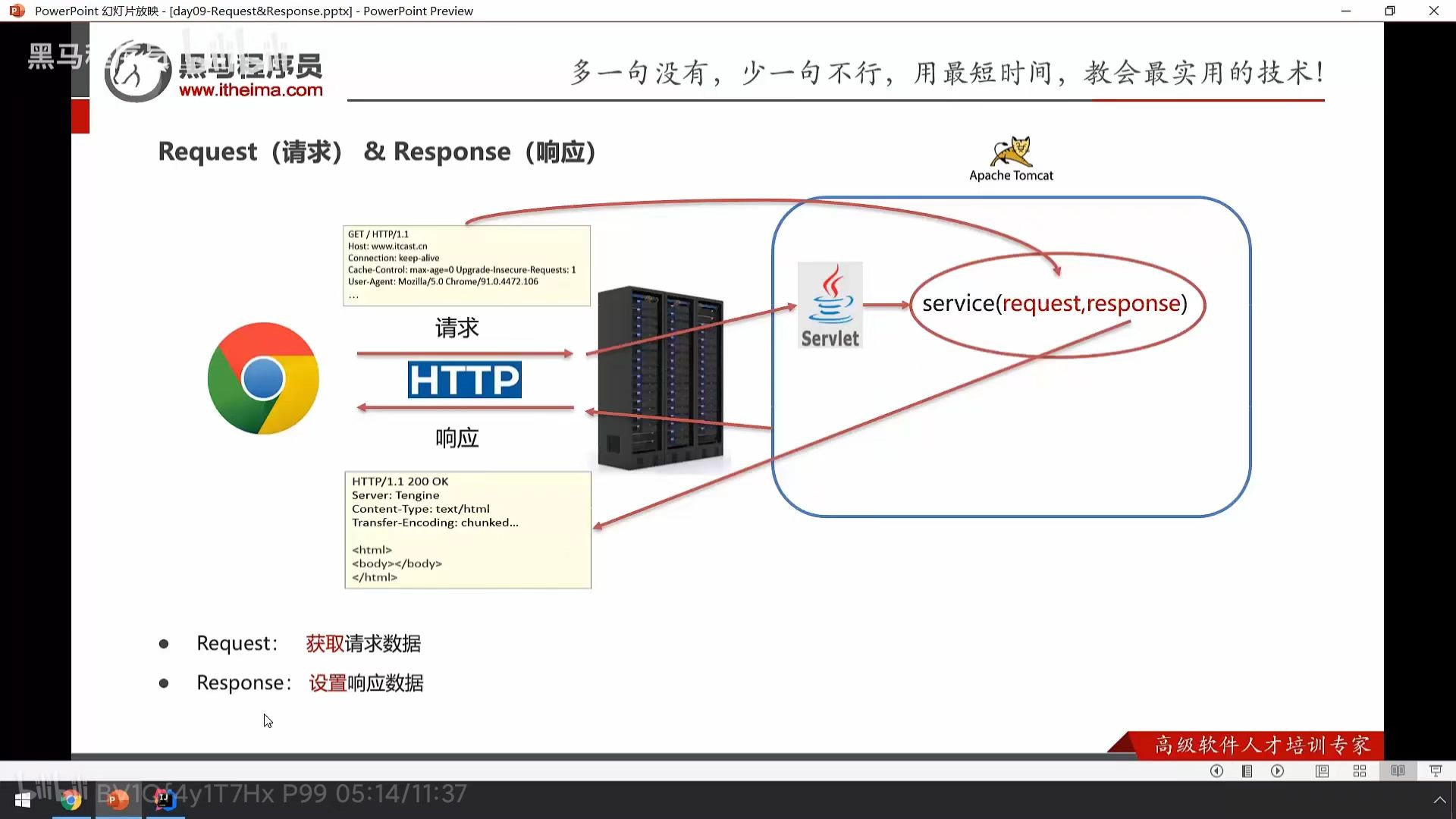然后就是response对象,它也是由tomcat服务器创造,是对服务器对浏览器做出响应是参与设置参数的对象。